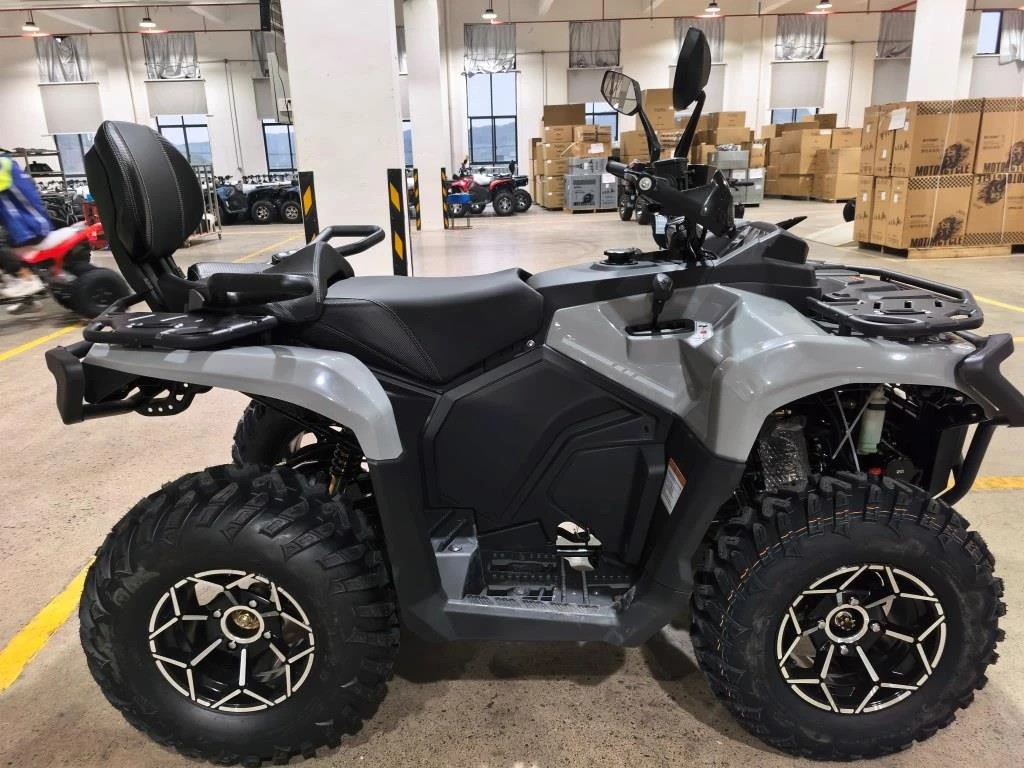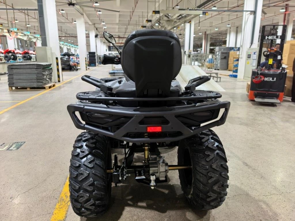 - Полноценное двухместное седло (обычно 1,5 местное). Спинка пассажира, передний и задний багажники, фаркоп и лебедка.